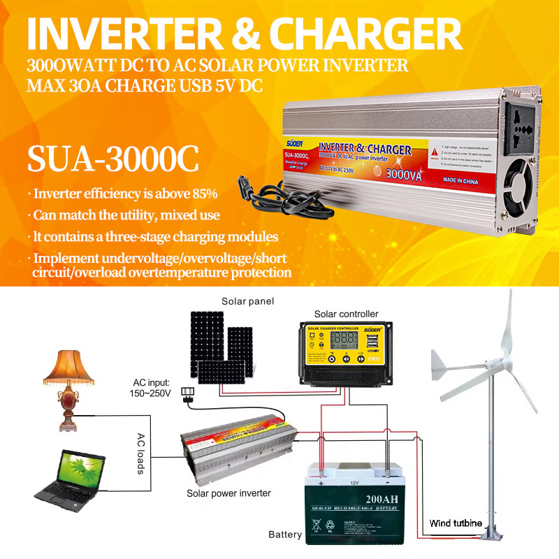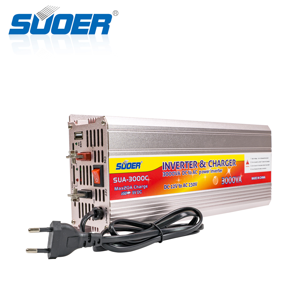 اینورتر شارژر سوئر مدل SUA-3000C یک دستگاه دوکاره قدرتمند است که هم بهعنوان اینورتر DC به AC عمل میکند و هم قابلیت شارژ باتریهای ۱۲ ولت اسید-سربی را بهصورت ایمن و کارآمد دارد. این مدل با توان خروجی ۳۰۰۰ وات واقعی و موج خروجی شبهسینوسی (Modified Sine Wave)، برای کاربردهایی نظیر کمپینگ، برق اضطراری منزل، کارگاههای کوچک و سامانههای خورشیدی ایدهآل است.